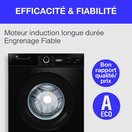 Lave-linge hublot BEKO BM0WU3922FB - 9 kg - Induction - L60cm - 1200 trs/min - Classe A - Noir