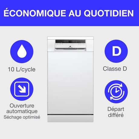 Lave-vaisselle pose libre - CONTINENTAL EDISON - CELV1145W - 11 couverts - 45 cm - 45 dB - Blanc
