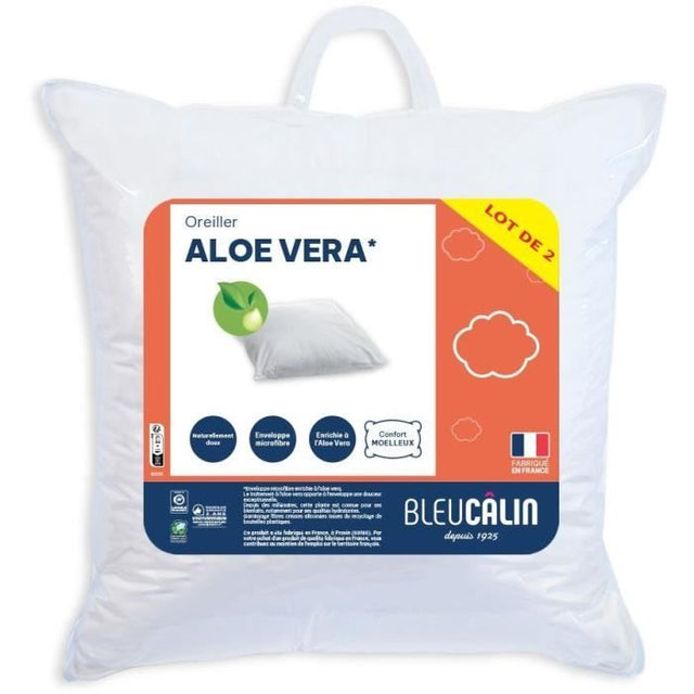 Lot de 2 oreillers aloé véra - 60 x 60 cm - Moelleux - BLEU CALIN - Blanc