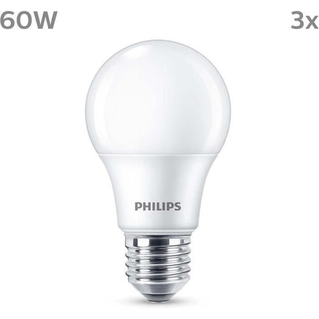 Ampoule LED - PHILIPS - 60 W - E27 - Blanc chaud - Dépolie - Non-Dimmable - 3 pieces