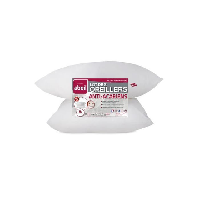 ABEIL Lot de 2 Oreillers Anti-Acarien - 60 x 60 cm - Blanc