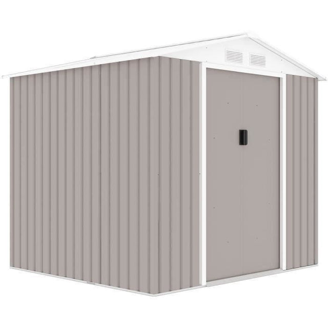 Abri de jardin en métal 4,07 m² - 213 x 191 x 195 cm - MARS -Kit d'ancrage inclus, 2 portes coulissantes - Taupe