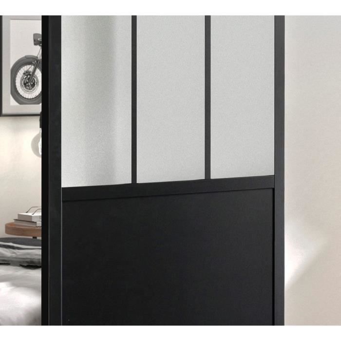 OPTIMUM Kit porte coulissante ATELIER noir + rail 2 amortisseurs + cache rail - 204 x 73 cm - verre dépoli