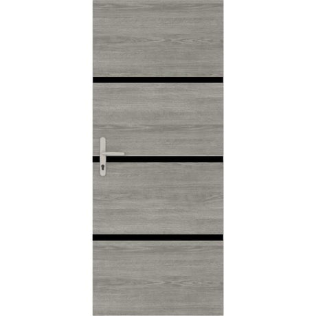 OPTIMUM - Kit porte coulissante + rail + bandeau Atelier - H 204 x L 93 x P 4 cm - Noir verre dépoli