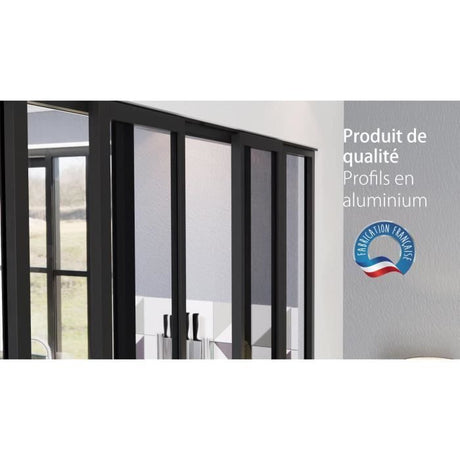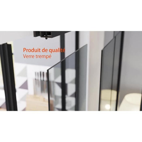 OPTIMUM Verriere coulissante 4 carreaux en verre trempÈ Noir - 108 x 123,2 cm