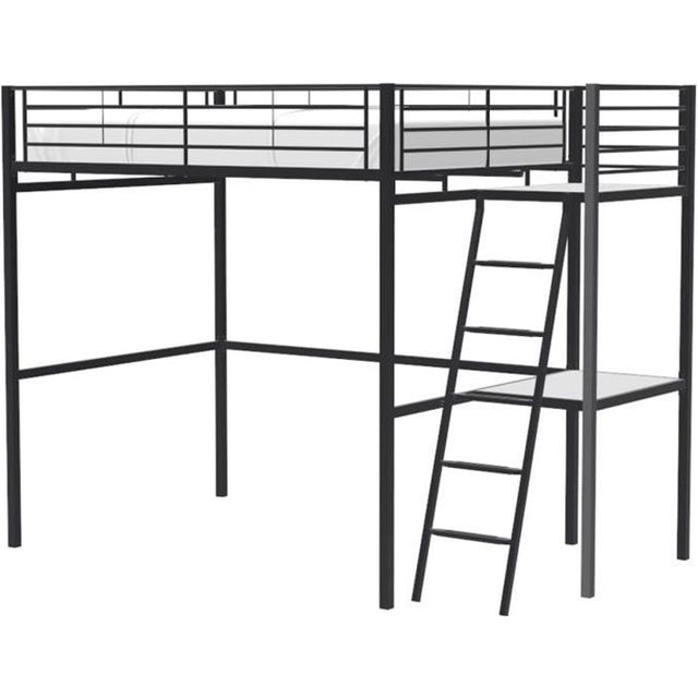 Lit mezzanine avec bureau en métal époxy - Noir - Sommier inclus - 140x190 cm - OXFORD