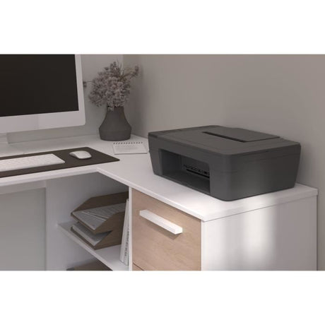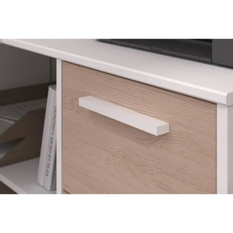 PARISOT Bureau d'angle 3 tiroirs - Décor Blanc / Chene - 121,2 x 74,5 x 111 cm - ESSENTIEL