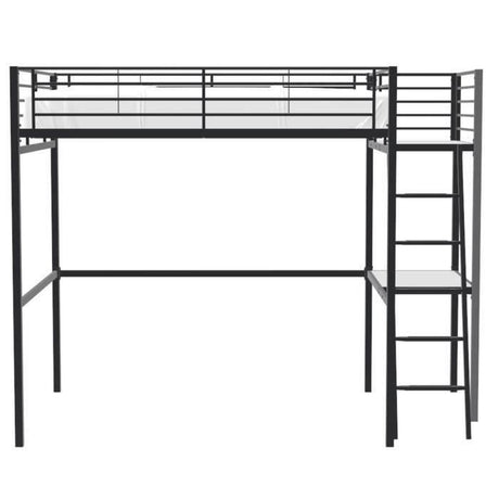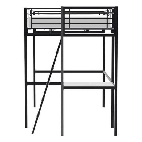 Lit mezzanine avec bureau en métal époxy - Noir - Sommier inclus - 140x190 cm - OXFORD