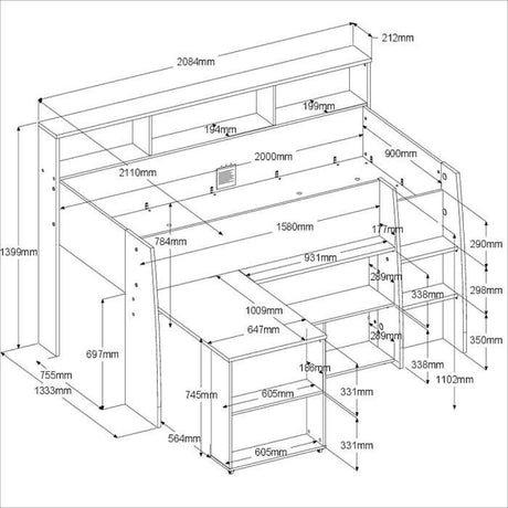 €416,97Precio unitario /Agotado Lit combinÈ mezzanine enfant - TOM - Blanc et chene - Armoire, bureau et sommier inclus