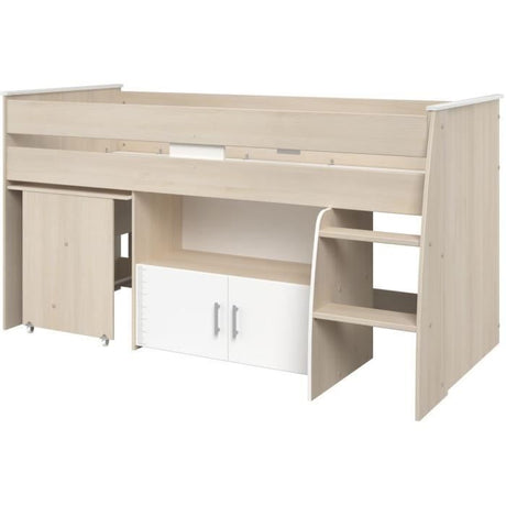 Lit combiné enfant Parisot ZOLA 90x200 cm - 2 portes - Avec bureau - Décor acacia clair et blanc