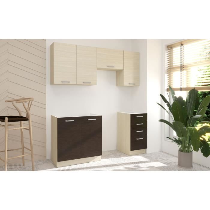 CHAMONIX Cuisine complete 180cm 5 ÈlÈments - DÈcor chene clair - L180 x P52 x H82 cm - Plan de travail non inclus
