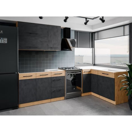 Cuisine complete OSLO - L 300 cm - Décor chene - Plan de travail inclus