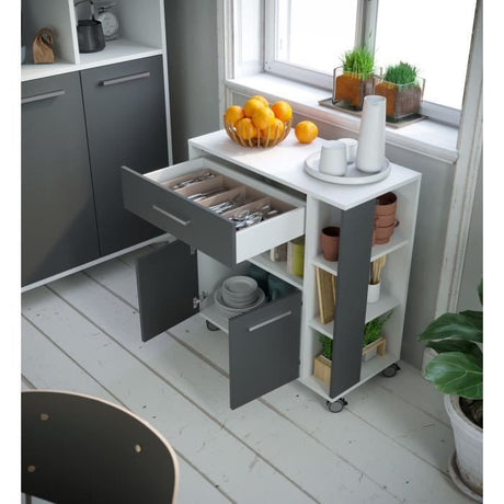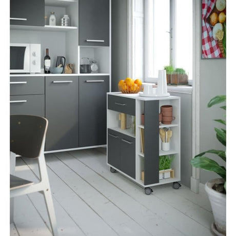 ECO Desserte 2 portes 1 tiroir - Blanc et gris - L 80 x P 39 x H 87 cm