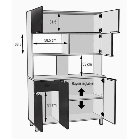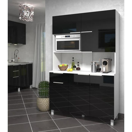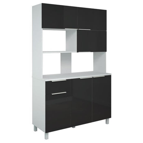 LOVA Buffet de cuisine contemporain noir brillant - L 120 cm