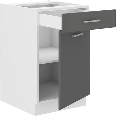 Meuble bas cuisine - 1 Porte 1 Tiroir - DÈcor Gris - L 50 x P 60 x H 86 cm - PREGO