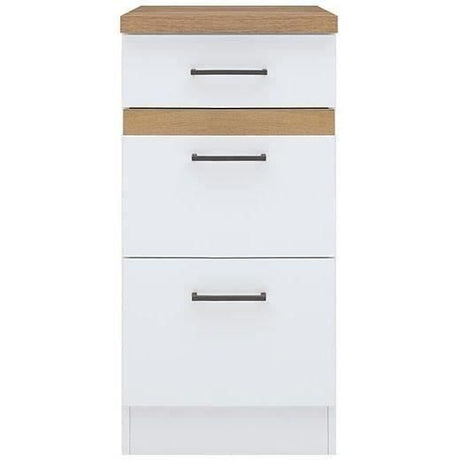 JUNONA Meuble bas de cuisine 40 cm - 3 tiroirs + plan de travail - Blanc brillant