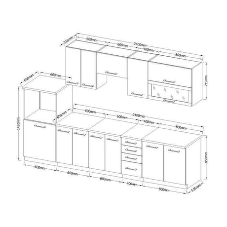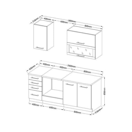 €538,01Precio unitario /Agotado LASSEN Cuisine complete L 180 cm avec meuble four et plans de travail - 6 éléments - Gris Matera