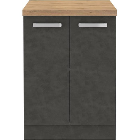 Meuble bas 2 portes battantes - Gris mat - L 60 x P 51,6 x H 85 cm - LASSEN