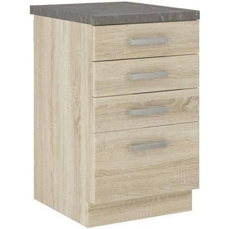Meuble bas 4 tiroirs avec plan de travail - Décor chene sonoma - L 40 x P 51,6 x H 85 cm - LASSEN
