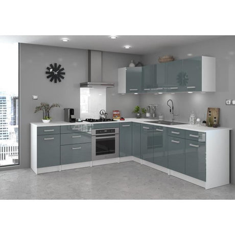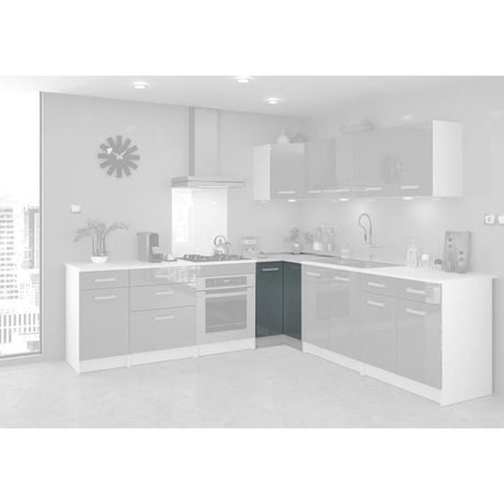 START Meuble de cuisine bas d'angle avec plan de travail L 88 x P 88 cm - Gris brillant