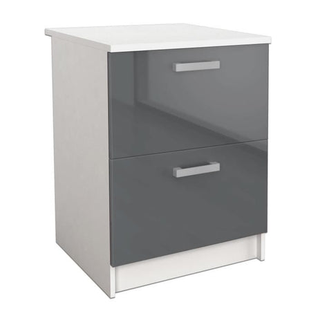 START Meuble bas de cuisine L 60 cm avec plan de travail inclus - Gris Brillant