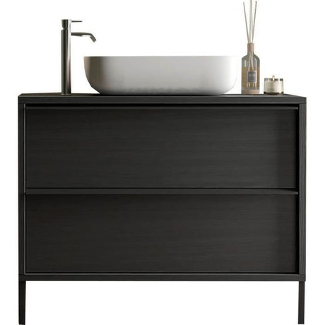 Meuble simple vasque L 92cm - 2 Tiroirs - Coloris Chene noir - STEEL