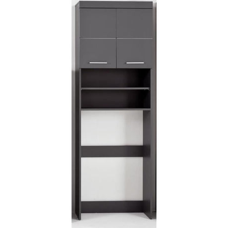 Meuble pour machine a laver - 2 portes - Gris Brillant - L63 x P24 x H187 cm - AMANDA