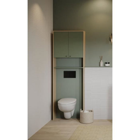Meuble WC dessus de toilettes - Vert et chene - 2 portes - L64 x P20 x H186 cm - ELISA - DEMEYERE