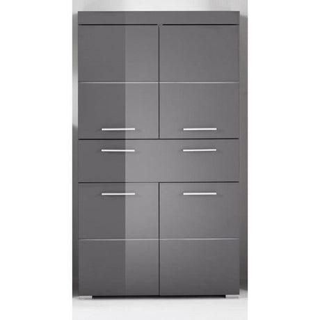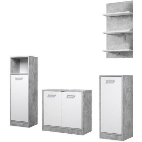 Meuble de salle de bain Colonne double - 4 portes + 1 tiroir - L73 x P31 x H130 cm - Gris - AMANDA