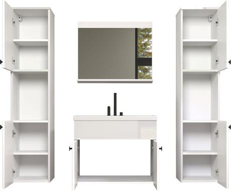 Salle de bain complete - Blanc brillant - 2 colonnes a suspendre + Meuble vasque + miroir - HAVEN