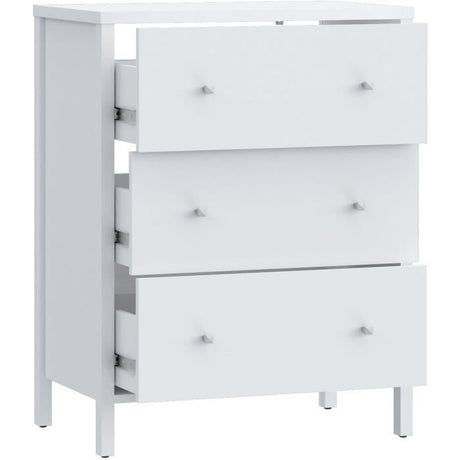 Meuble sous lavabo - Blanc - 3 tiroirs - L64 x P40 x H83 cm - IPSARION