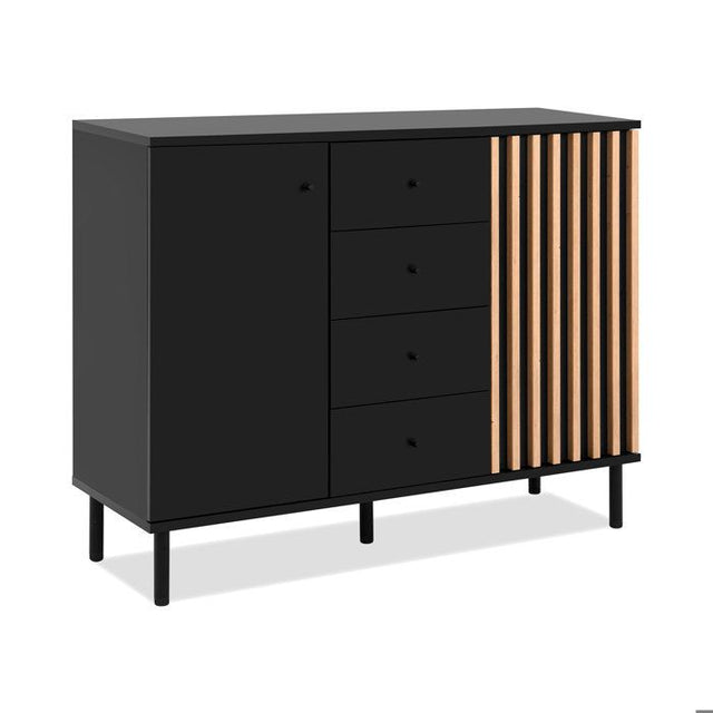 Buffet - MONZA 01B - Noir / Chene artisan - 2 portes - 4 tiroirs - 118 x 90 x 40 cm