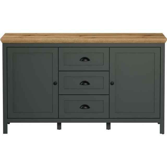 Buffet - Stanton - Vert profond / chene naturel - 2 portes - 3 tiroirs - 146cm x 45cm x 86cm