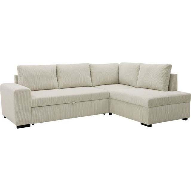 Canapé d'angle convertible réversible NIRVANA 4 a 5 places - Tissu velours côtelé perle - Coffre de rangement - L247 x P 183 x H 87