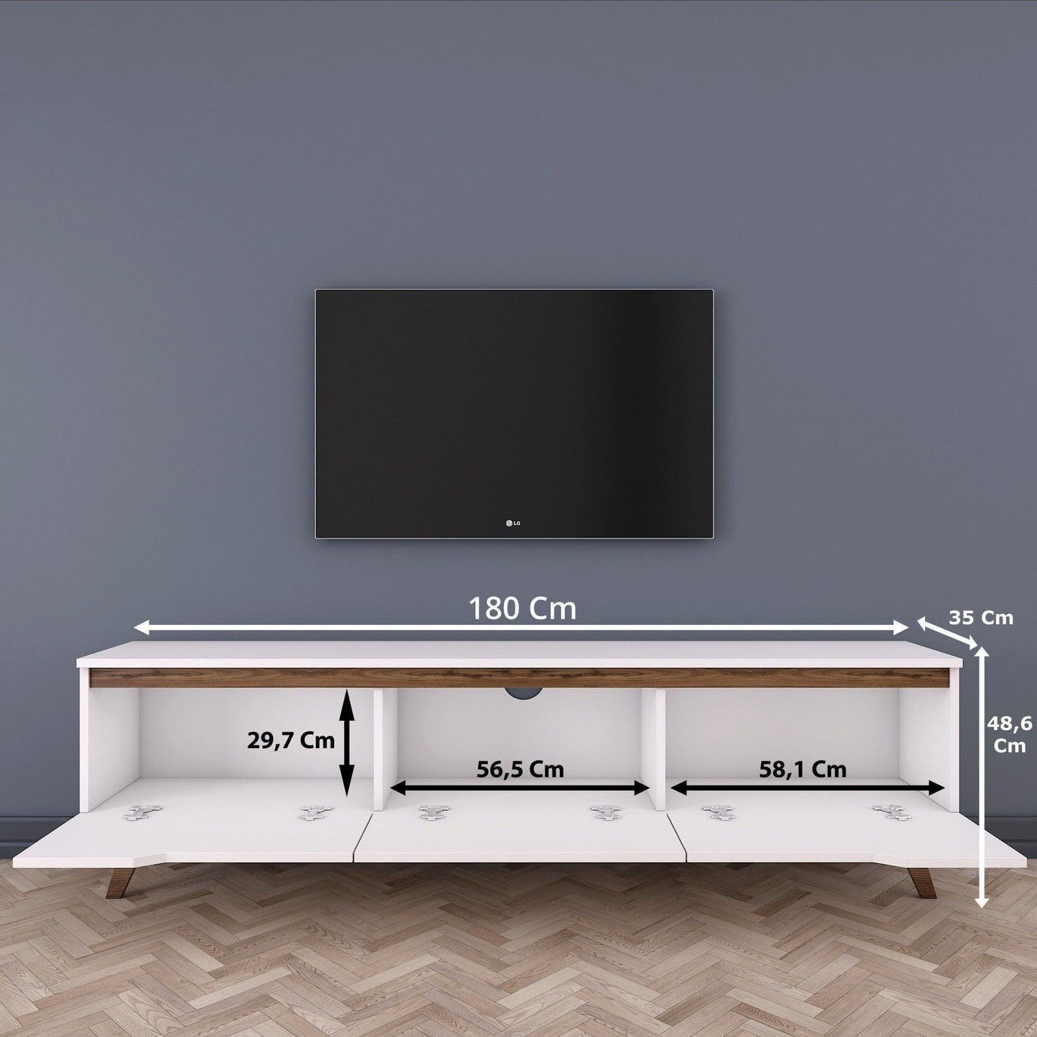 Meuble TV - D1 - Blanc / Noyer - 180 x 49 x 35 cm