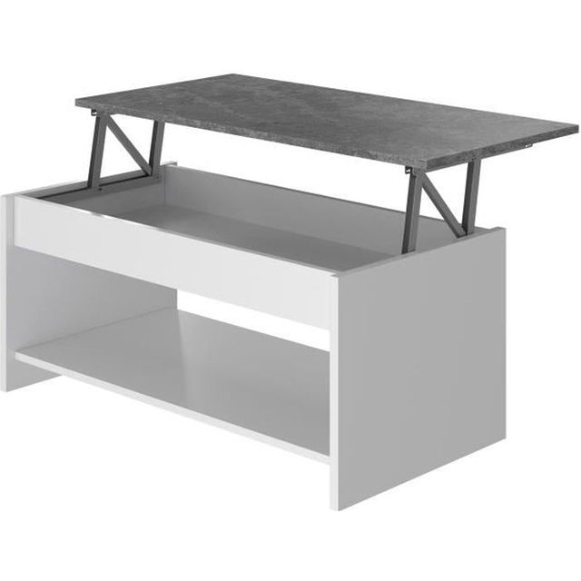 Table basse - Blanc et gris béton - Relevable - L 100 cm x P50 x H44cm - HAPPY