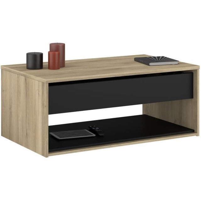 Table basse relevable - OSTARA - Rectangulaire - Chene / Noir - Relevable - 110 x 65 x 45/67,2 cm