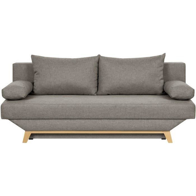 TEIJO Banquette convertible 3 places avec coffre de rangement - Tissu Taupe - L187 x P 91 x H 82 cm