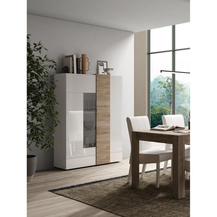 Vitrine - VENEZIA - 2 portes - Blanc laqué / Chene Cadiz - 121 x 44 x 169 cm