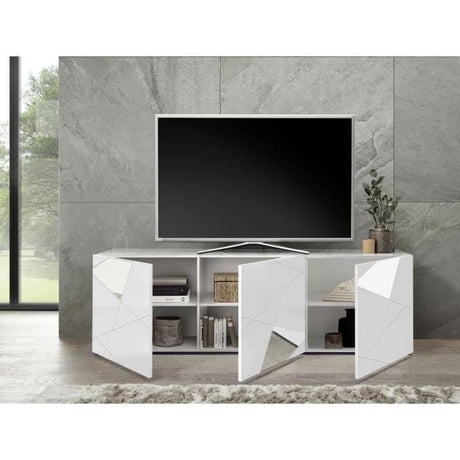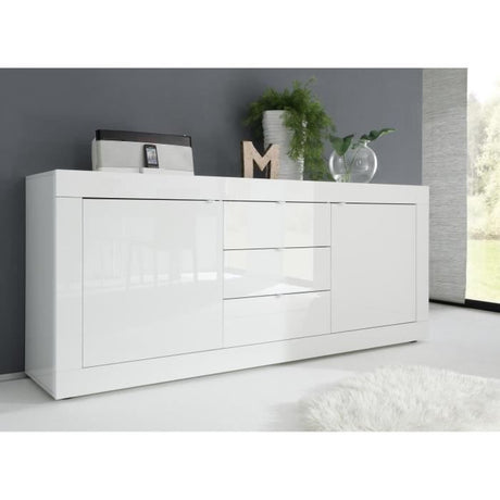 Ensemble séjour - Meuble Tv 180 cm + Buffet 210 cm 2 portes 3 tiroirs - BASICO - Blanc laqué