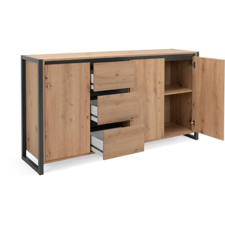 DENVER Buffet 3 portes 3 tiroirs - Décor chene artisan / Anthracite - L 160 x P 40 x H 88 cm