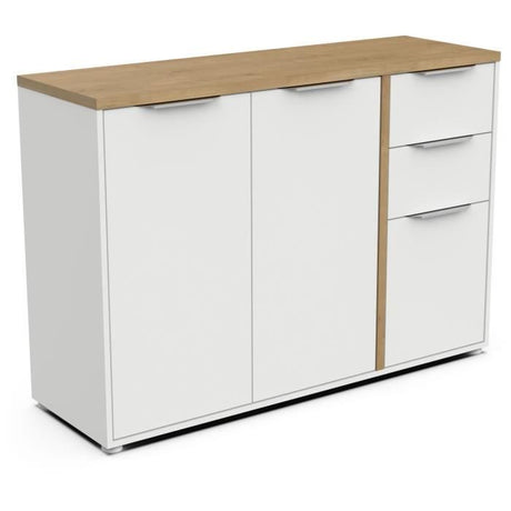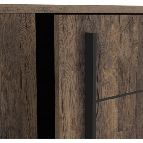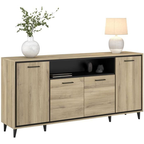 Enfilade MONACO - Décor chene et noir - 2 Portes + 3 Tiroirs - L206 x P44,9 x H94 cm - CBA MEUBLES