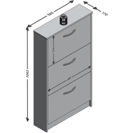 FMD Meuble a chaussures 3 compartiments inclinables Blanc L58,5 x l17 x H168,3 cm