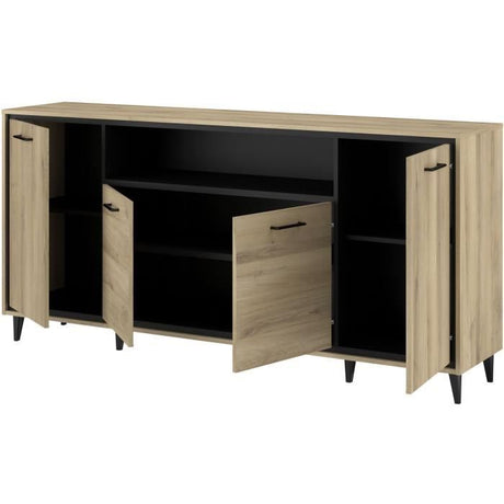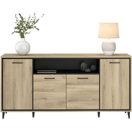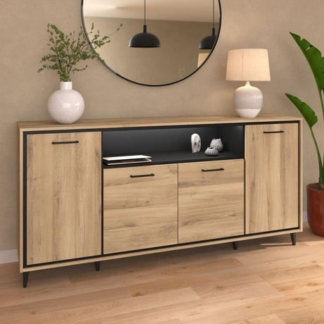 €358,65Precio unitario /Agotado Enfilade avec leds - OSTARA - Chene / Noir - 4 portes et 1 niche - PARISOT