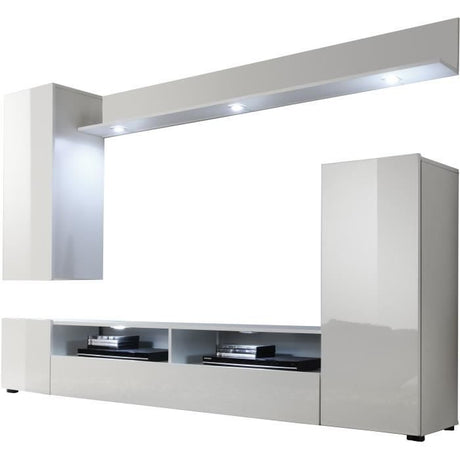 Composition murale TV SIENNA - Laqué blanc et béton - L295 x P30 x H187 cm