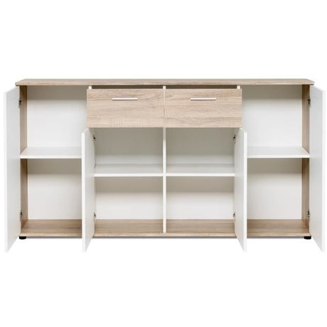 JACKY Buffet bas classique blanc et décor chene mat - L 160 cm