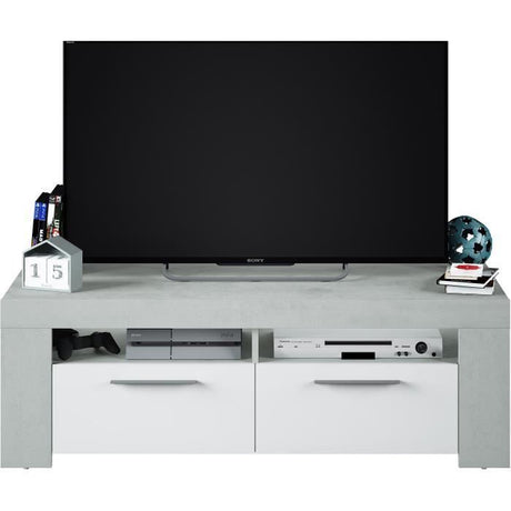 Meuble TV - AMBIT - Effet Béton / Blanc Artik - 2 portes - 2 niches - 120 x 42 x 40 cm