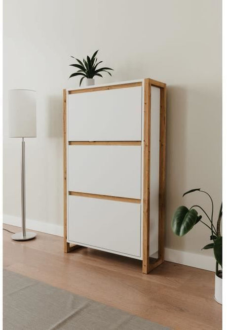 Meuble a chaussures - 6 paires - Blanc mat - 3 abattants - L58,2 x P20,4 x H115,5 cm - MAC