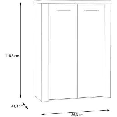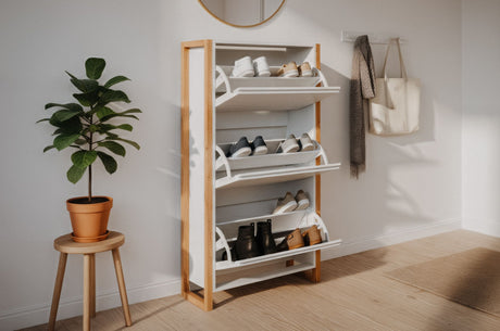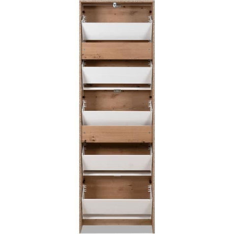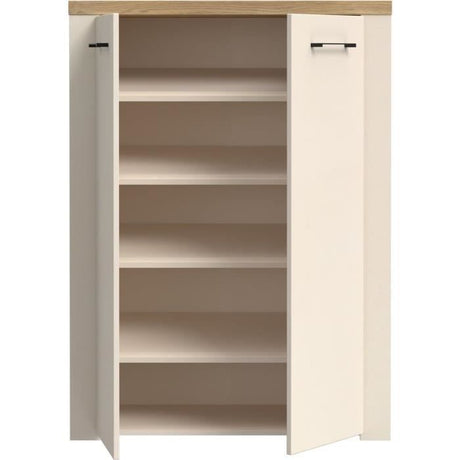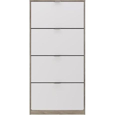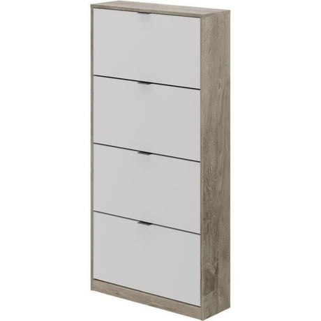 Meuble a chaussures - 4 Portes - Chene et blanc - 75x24x154 cm - Leona
