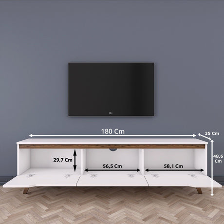 Meuble TV - D1 - Blanc / Noyer - 180 x 49 x 35 cm
